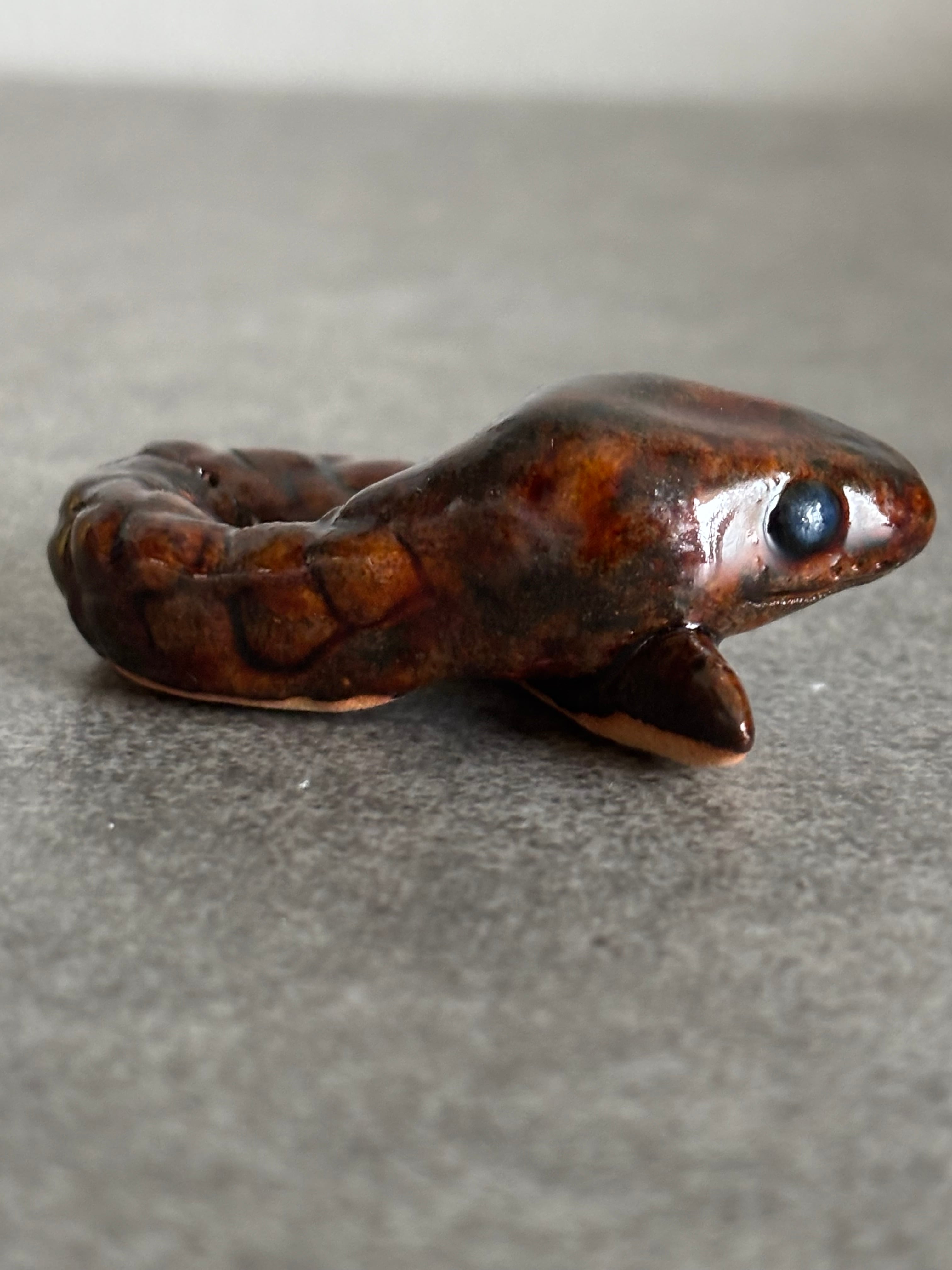 生き物シリーズのヘビモチーフの帯留です。ヘビ好きの方にはたまらない存在感を放ち、着物や浴衣に華やかなアクセントを加えてくれます。特別な日や普段使いにもぴったりです!