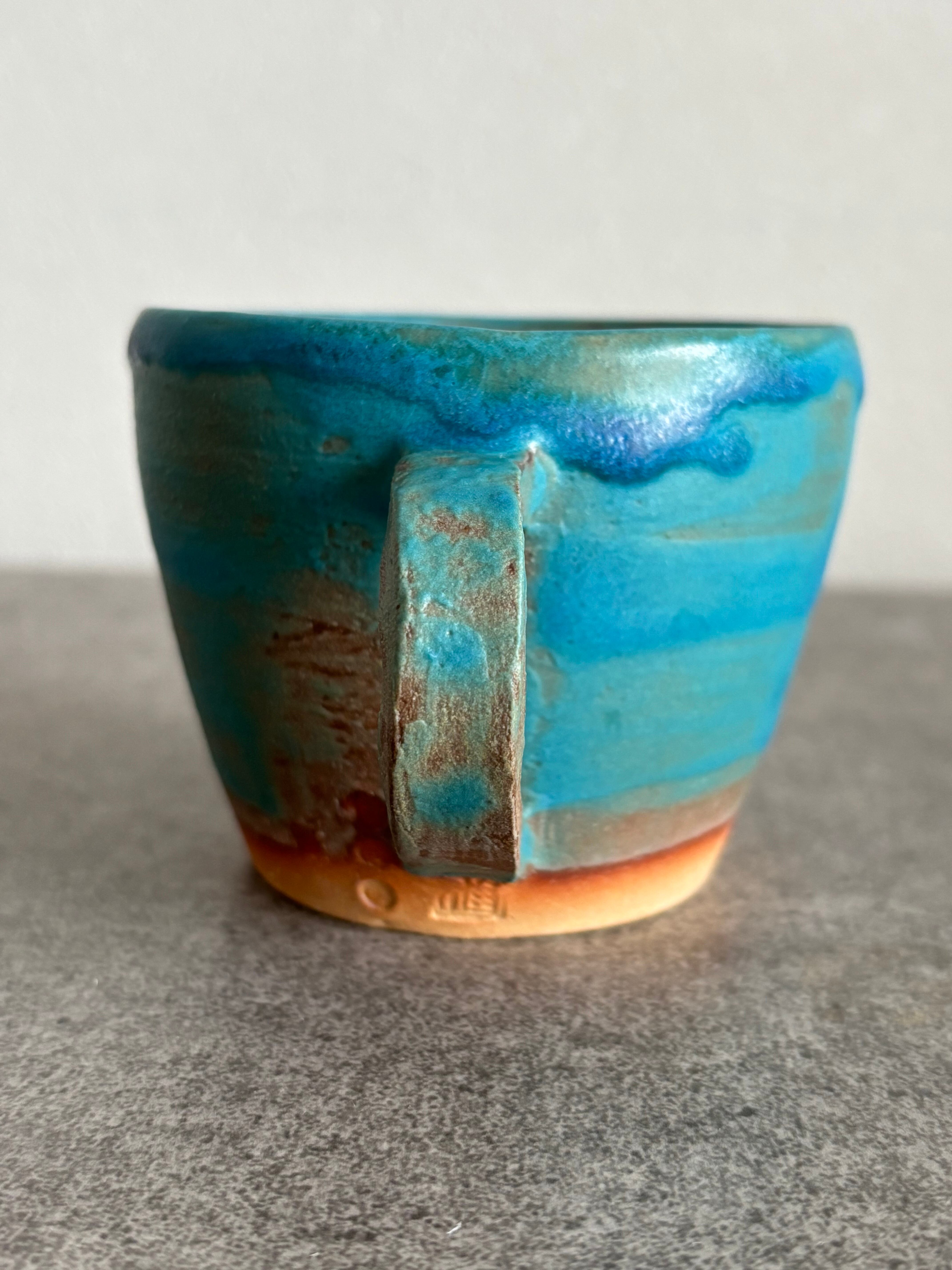 SOLDコーヒーカップ ハワイアンブルー 釉薬垂れ CH-1