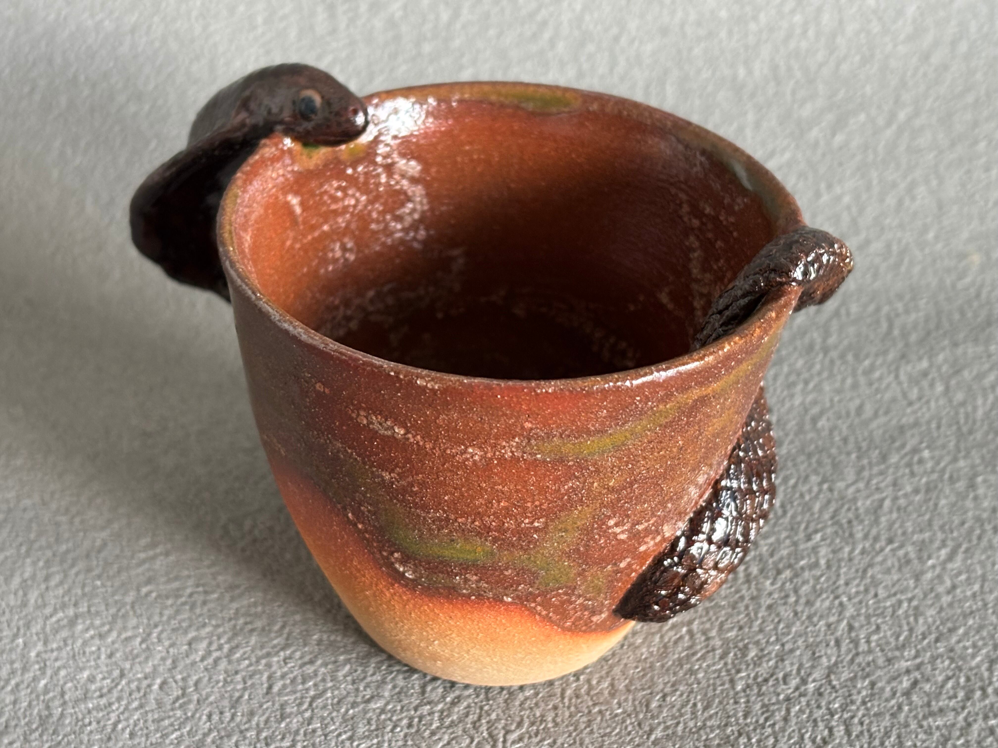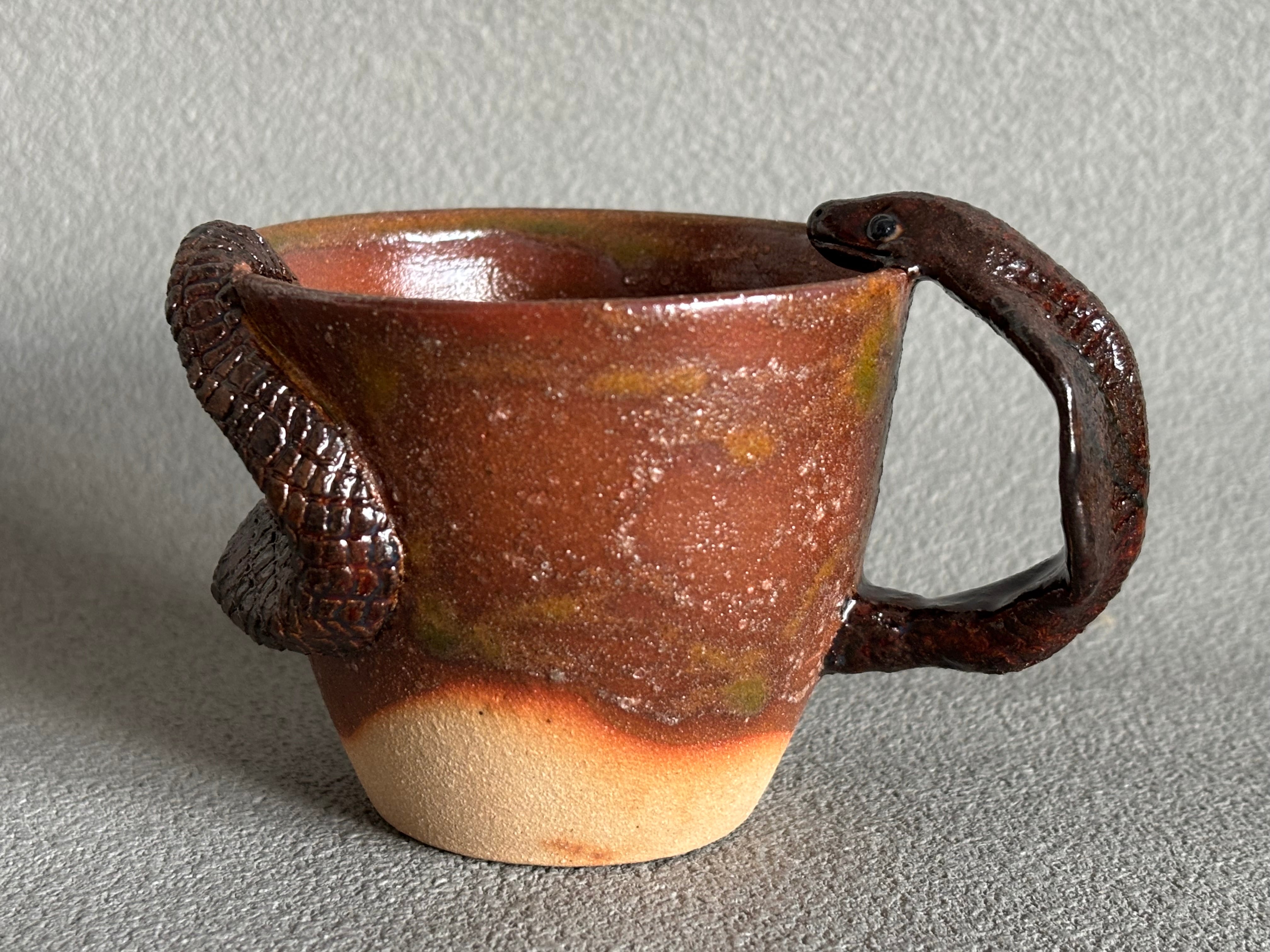 生き物シリーズのコブラモチーフのコーヒーカップです。内側にエメラルドグリーンのガラス溜まりと、コブラが取っ手になったデザインで、日常のコーヒータイムを楽しんで下さい。