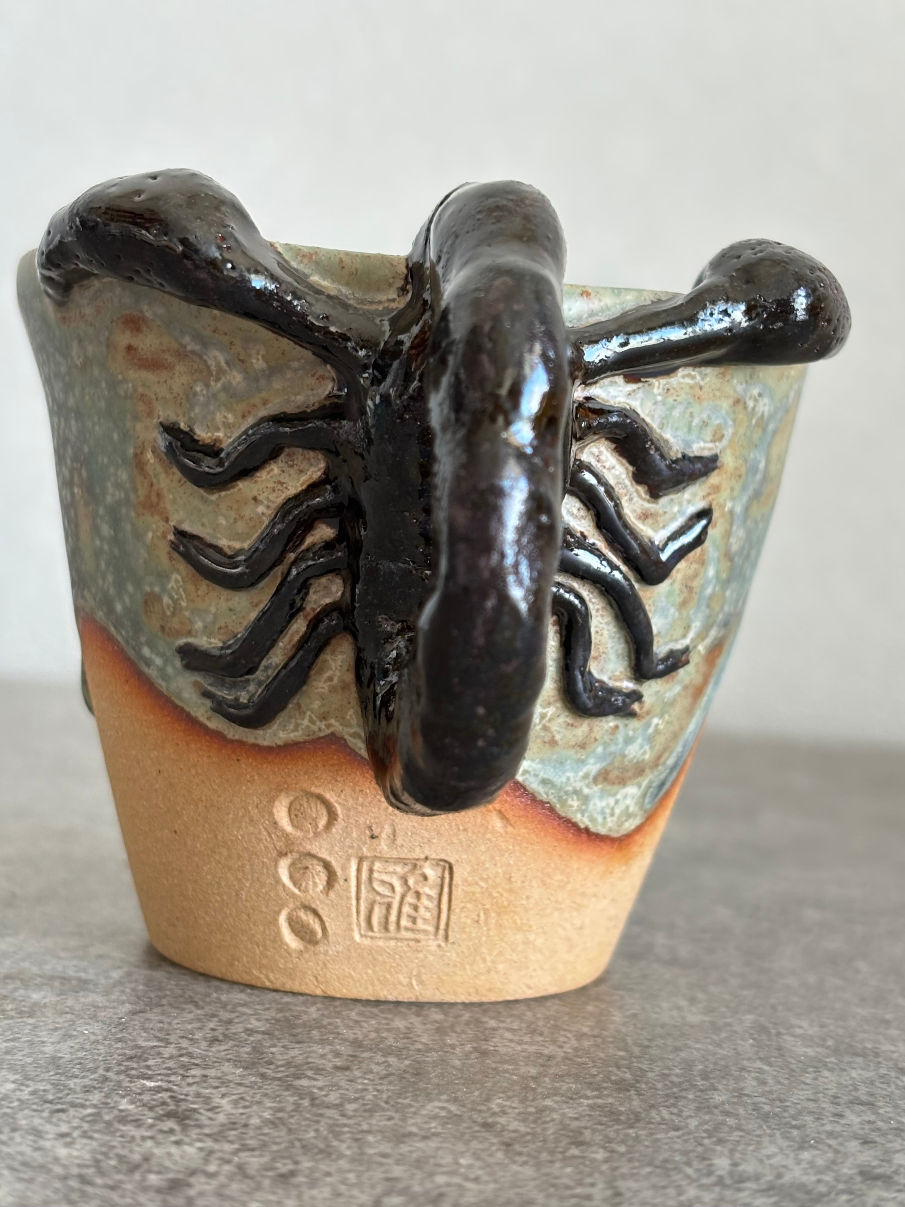 生き物シリーズの蠍がモチーフのコーヒーカップです。釉薬垂れのエメラルドグリーンの釉薬と、蠍好きの方にはたまらないデザインで、日常のコーヒータイムを楽しんで下さい。
