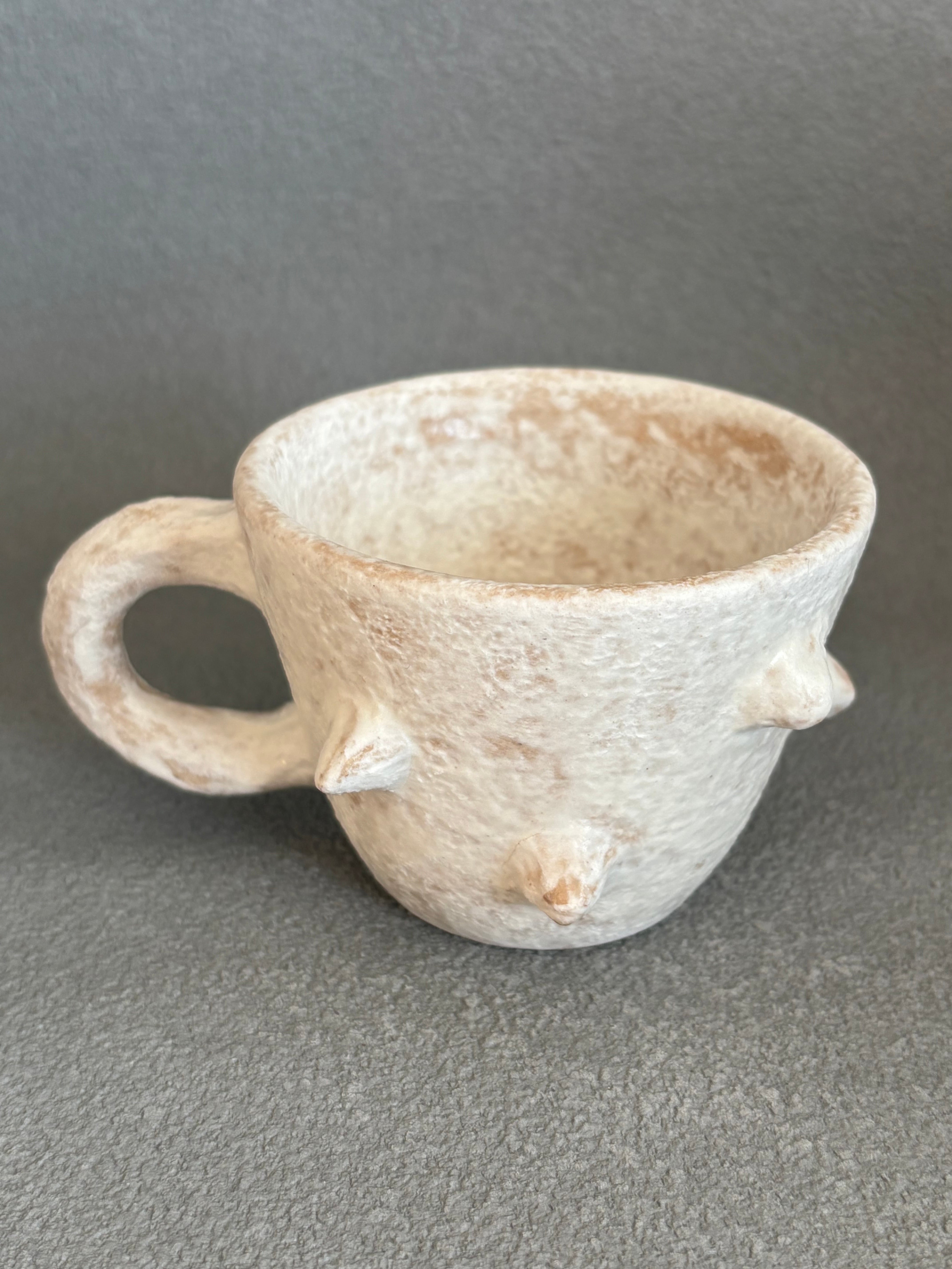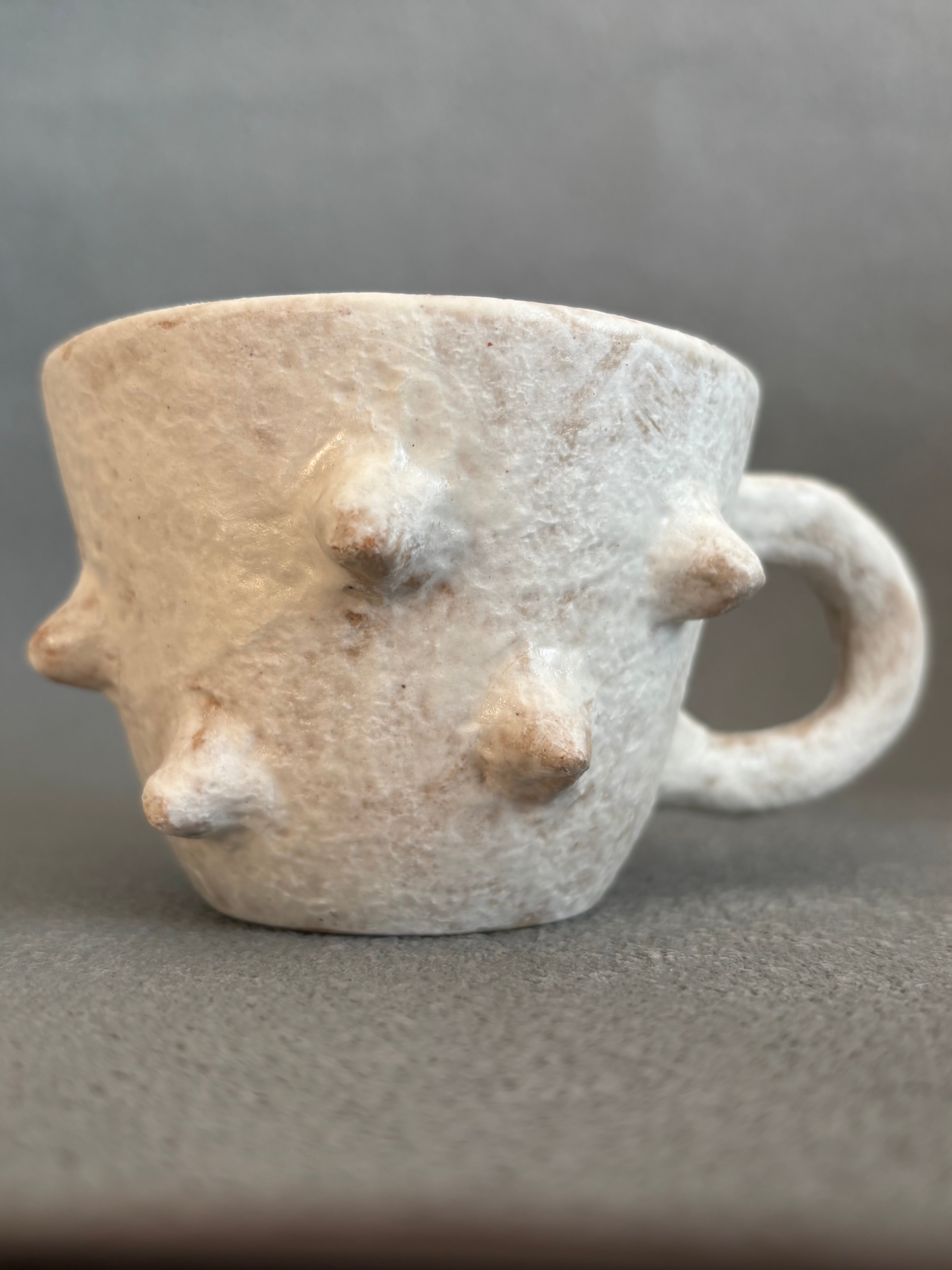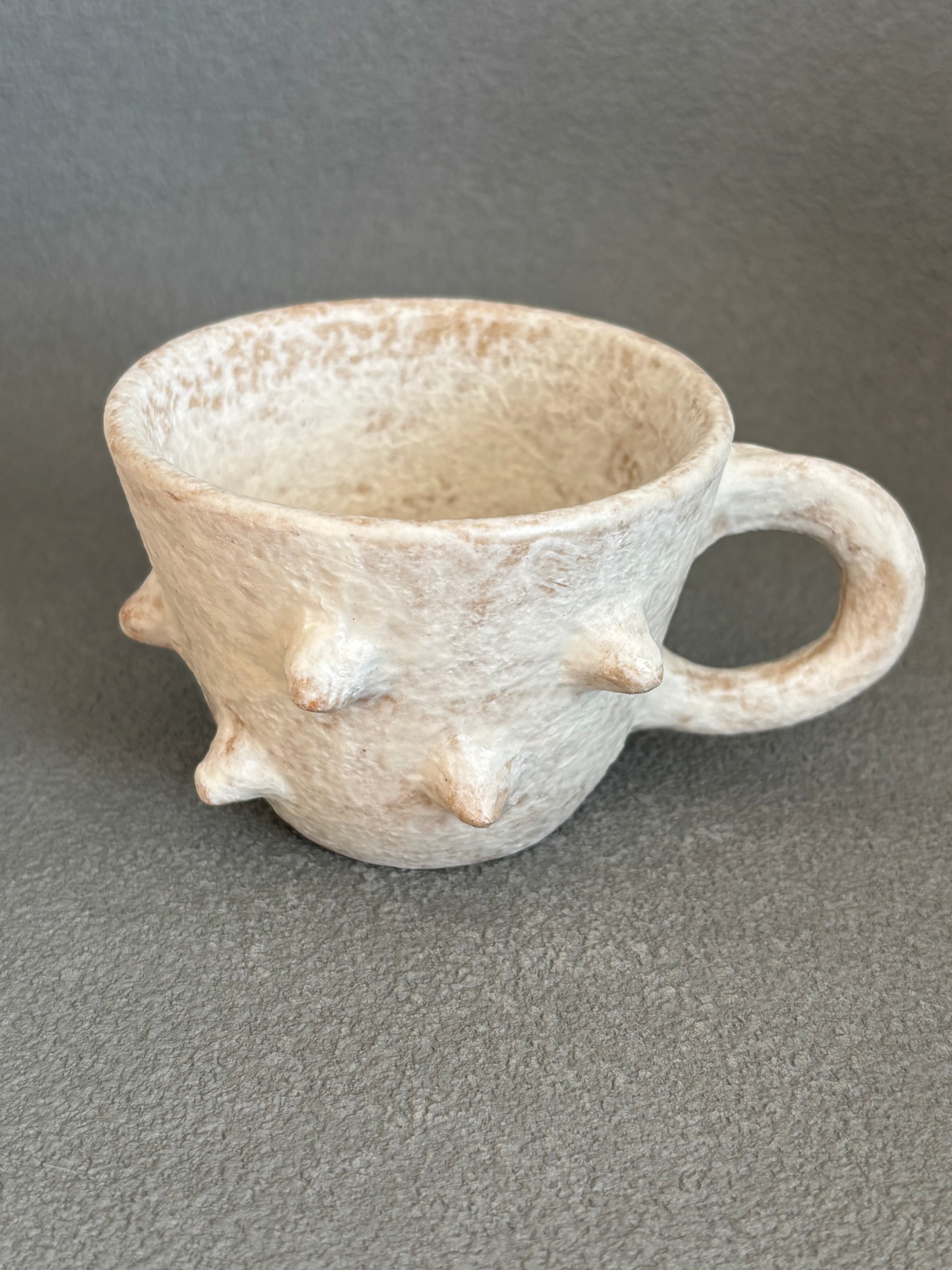可愛い白いトゲトゲが特徴の小ぶりなコーヒーカップです。使ううちに色が変わって自分色に染まるのも趣きがあります。毎日のコーヒータイムを特別なひとときにしてくれます。