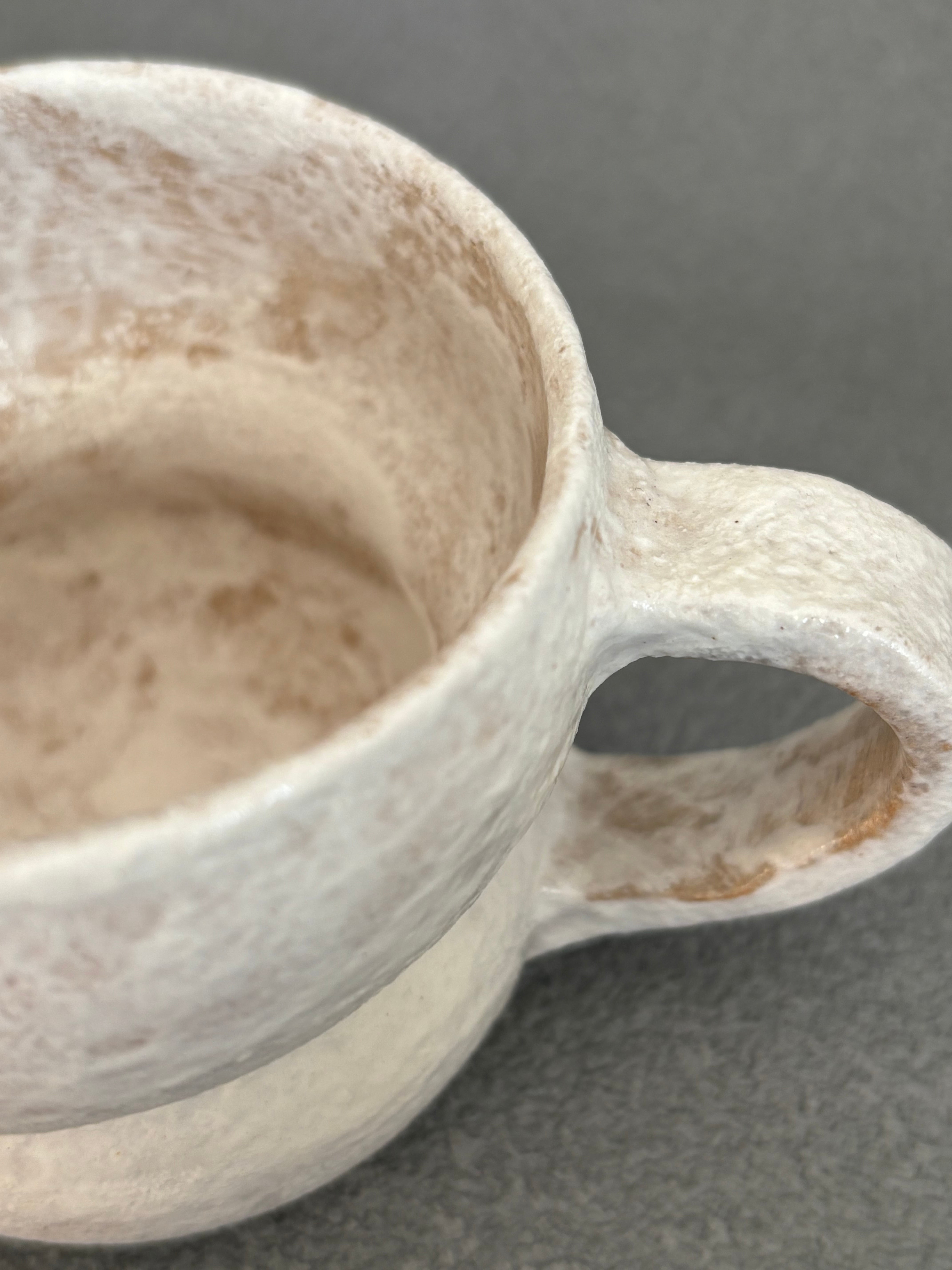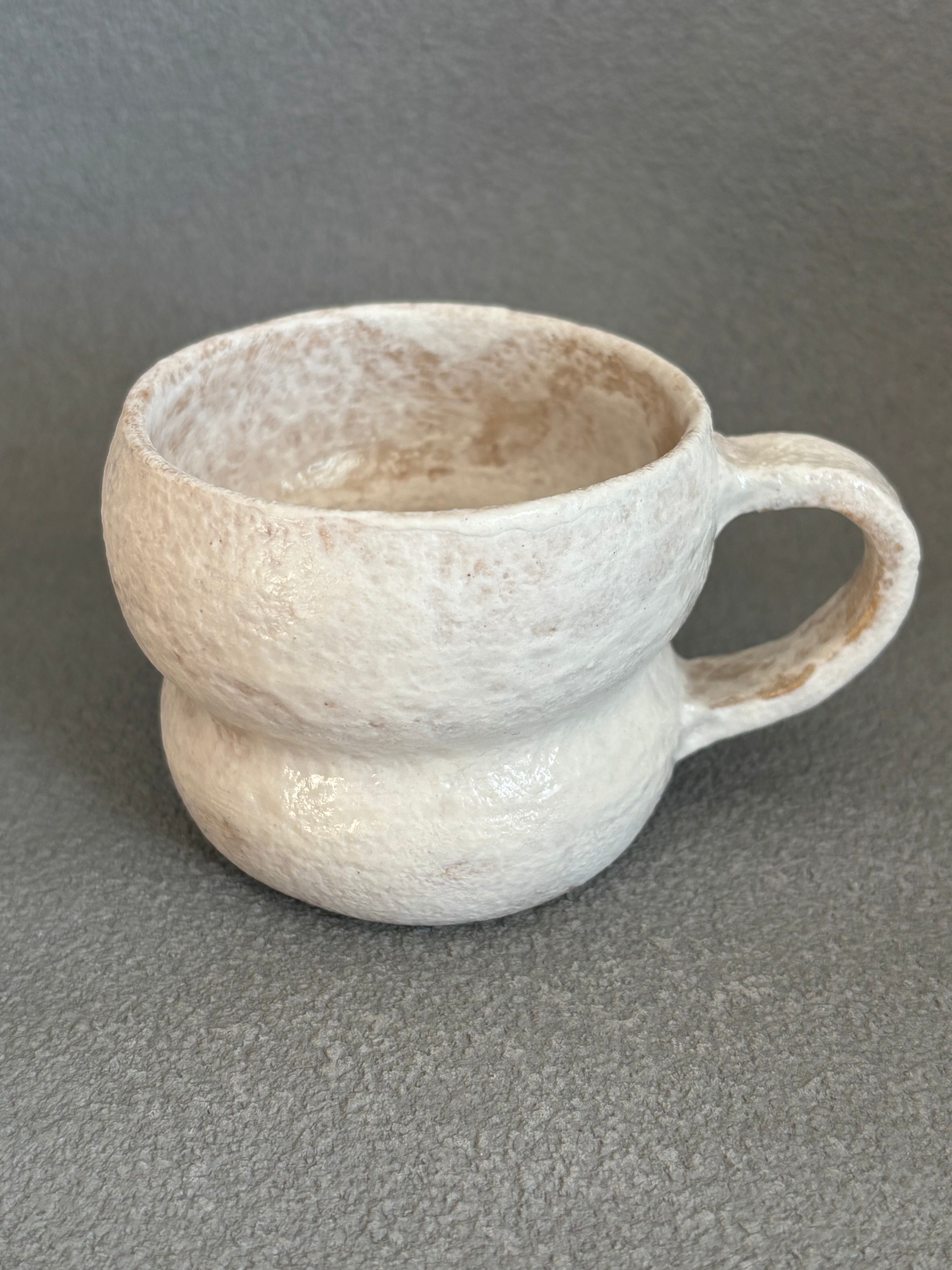 丸い段々のwaveが可愛い、白い砂浜をイメージした白化粧の小振りなコーヒーカップです。使ううちに色が変わって自分色に染まるのも趣きがあります。毎日のコーヒータイムを特別なひとときにしてくれます。